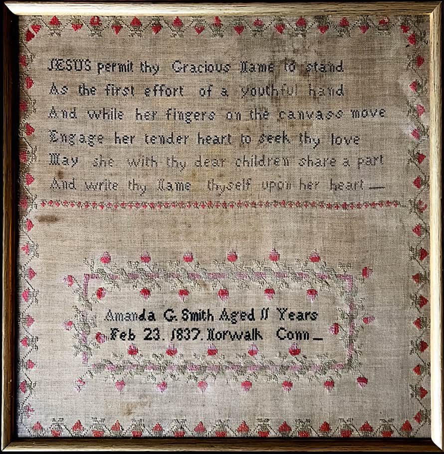A sampler may look like decoration at first glance – but needlework historian Alexandra Peters argues it can be a primary source. On Saturday, March 7, 2026, at 2:00 p.m., Peters will present “History Revealed: Schoolgirl Samplers” for the Norwalk Historical Society at Mill Hill Historic Park – Town House (2 East Wall St., Norwalk). Admission is free; registration is required.